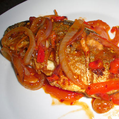 Pickled with spices then marinating overnight gives the special Jamaica taste. Served with tomatoes, onions & pepper.